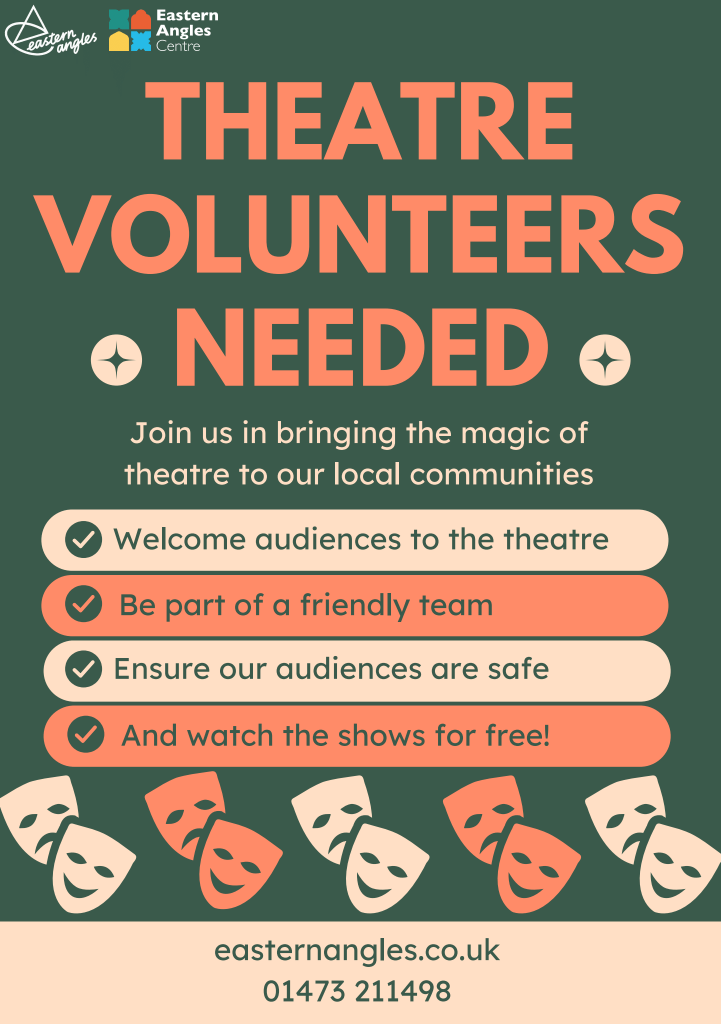 If you’re interested in joining the team then Eastern Angles are hosting a Volunteer Training Day at the Sir John Mills Theatre (Eastern Angles Centre) on Saturday 18th November. All the details are on their website Eastern Angles Volunteer or phone the team on 01473 218202.