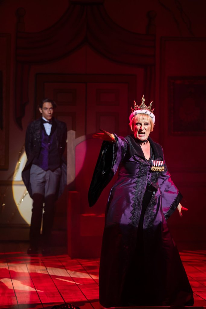 Dusty Crevice isn’t the only dame in this panto though! In a tremendous coup, the voice of the magic mirror is none other than Dame Judi Dench, one of the life patrons of the theatre, and making her panto debut, lending her distinctive tones, in pre-recorded pieces, to the show. The magic mirror belongs to evil Lady Lucretia, Snow White’s stepmother, who should hand back the crown as Queen, now Snow White has come of age, but is hatching a dastardly plan, with her faithful butler Grumble, to remain on the throne and get rid of her stepdaughter once and for all.