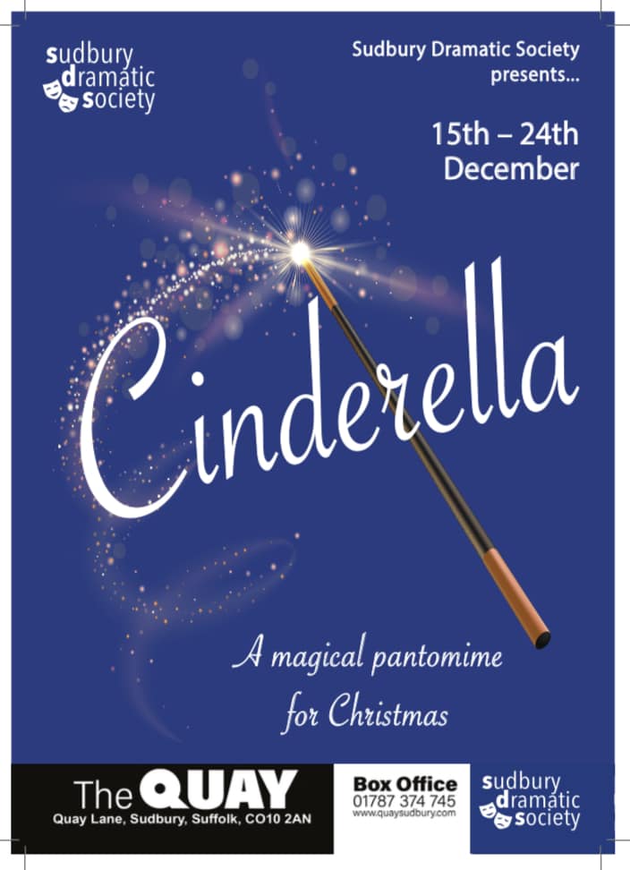 Once again over Christmas Sudbury’s Quay Theatre will resound to lots of booing, hissing, cheering and “it’s behind you’s” as Sudbury Dramatic Society (SDS) hit the stage from mid December with their popular annual pantomime. This year it’s Cinderella – a panto the society haven’t performed in over ten years, and runs from Friday the 15th to Christmas Eve (24th).