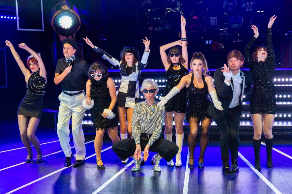 IODS choreographer Luke Berry keeps the style of the dance moves perfectly especially in the monochrome club scene with The Aloof, The Heavyweight and The Big Finish, three dance numbers as famous as any of the songs from the score.