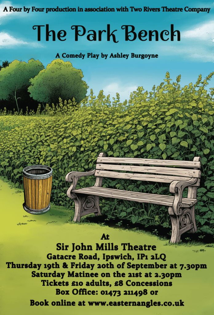The Park Bench is at The Sir John Mills Theatre 20th and 21st September – there’s a 7.30pm performance tonight 20th and a 2.30pm matinee on 21st ( no evening performance)