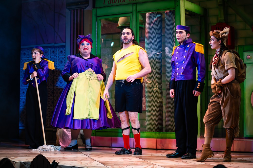 Of course, Abanazer has a dastardly plan to marry Princess Yasmin (Darcy Manning) so he can rule Arabia. His actions are worthy of every boo you can muster. You should see how he treats the glamorous but credit-poor widow Sally Swankey (Quinn Patrick) and Aladdin’s charming pet camel Camilla (Lizzie Buckingham). You’ll certainly enjoy the comic schadenfreude of how he gets his comeuppance in the Laundromat – oh yes you will. But alas, there are consequences for his humiliation. In revenge, Abanazer sends poor Aladdin on a perilous journey in search of the magic lamp and the Genie within – a tudor-robed northerner whose duty is to grant three wishes to whoever is bestowed with the ring of power. You’ll note that Genie, played by Charlie Cameron, is never in the same scene as Vizzy, Princess Yasmin’s very efficient PA. I love a character double-up.