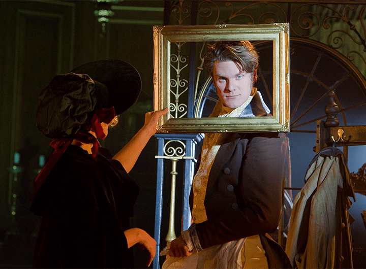 Luke Barton plays Mr Darcy with just the right amount of arrogant pride at the start that mellows and softens to become the hero we all love. But he’s also Mr Bennett, Mr Wickham, Mr Collins, and Mrs Reynolds and when he becomes Lady Catherine de Burgh it’s a highlight of the show. And the trick with the empty picture frame is not only very funny but a wonderful piece of stage craft.