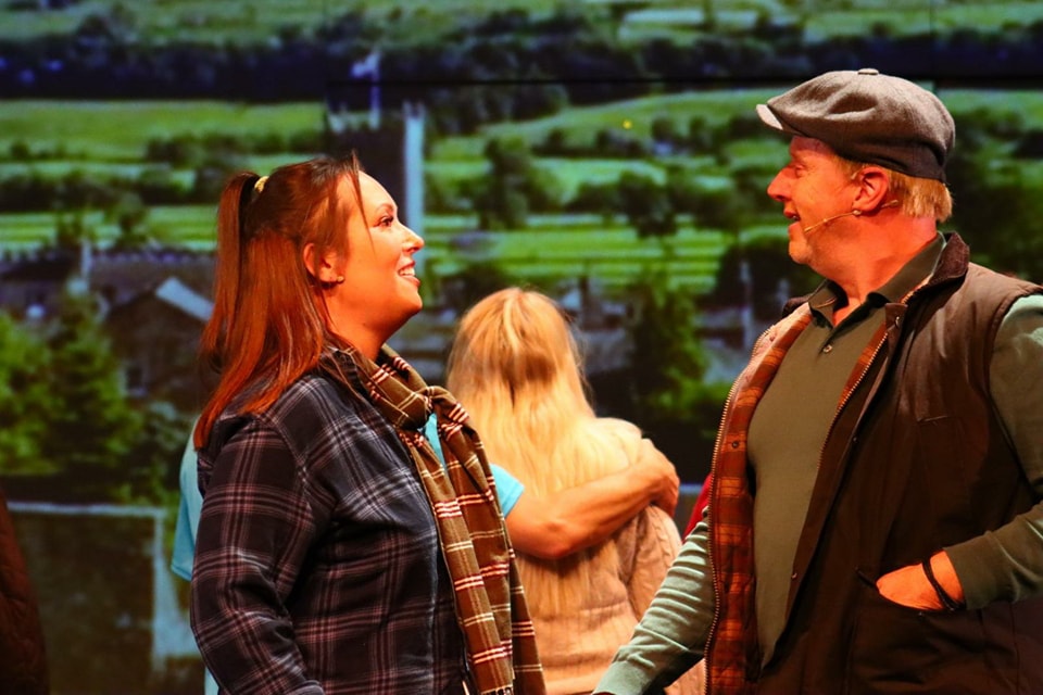 The cast themselves were simply superb. This is very much an ensemble piece and in this musical version we see more of some of the additional characters ( as we do in the film) that we don’t see much of or even at all in the play. This means the fellas have a bigger role. Gareth Barton, give a moving and sensitive performance as John, who is pivotal to the whole story. You have to believe that the whole town, not just his wife Annie, loved him, for the story to work and he is so warm and delightfully mischievous you can see why they do. Rod, Chris’s husband, played by Graeme Johnston also has a bigger role in the musical. He’s a comedy character, full of beans and ‘incoming’ with flowers at every turn but has such a tender warm scene with Chris in Act 2 it made me cry.