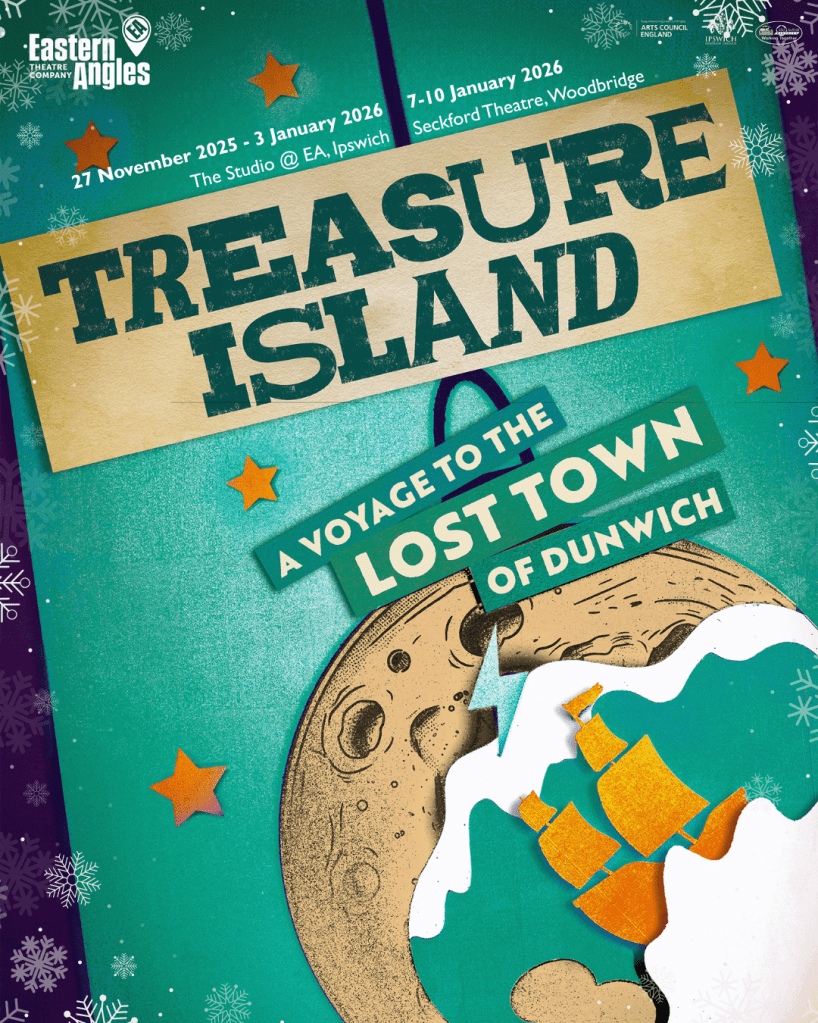 Treasure Island is on at the Studio Theatre at the Eastern Angles Centre in Ipswich from 27th November 2025 – 3rd January 2026 and Seckford Theatre in Woodbridge 7th-10th January 2026, with BSL interpreted performances at both venues.