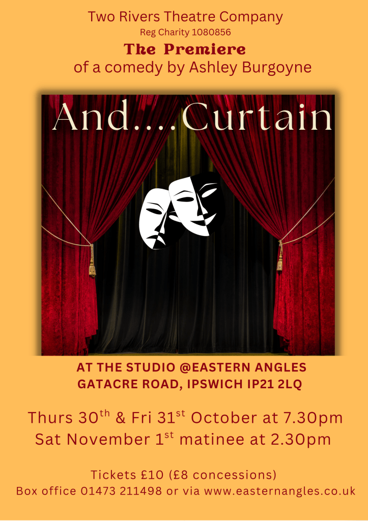 Two Rivers Theatre Company performed the premiere of a new play, ‘And…. Curtain’, by Ashley Burgoyne at The Studio at Eastern Angles Thursday 30th October 2025.